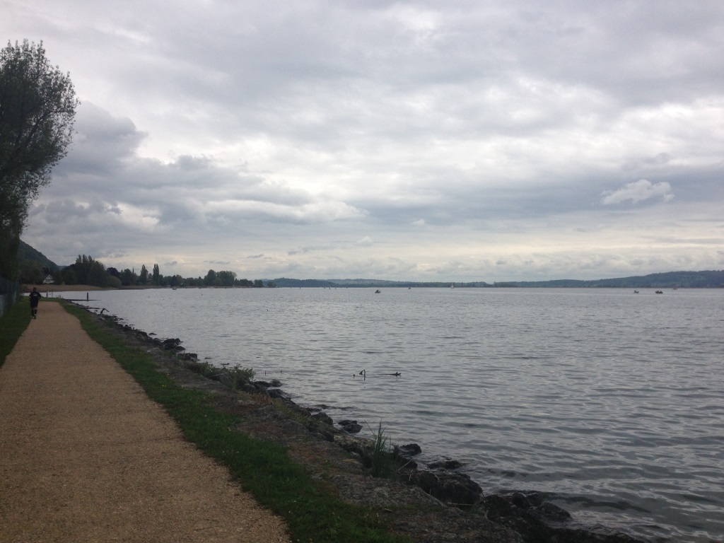 Nach dem Wechsel der Seeseite sind es noch knapp 20km. Hier ist es nun sehr einsam und ich kann nur zwei Läufer überholen und werde selber nie überholt. Grundsätzlich läuft es mir tiptop, allerdings habe ich das Gefühl. dass ich mich gegen Ende immer mehr verspanne. Ich muss versuchen, in Zukunft noch runder und lockerer zu laufen. Mit den neuen Schuhen läuft es gut. Das Tapen der Zehen hat sich bewährt und ich habe in diesem Bereich im Gegensatz zum Zürich Marathon keine Blasen mehr.